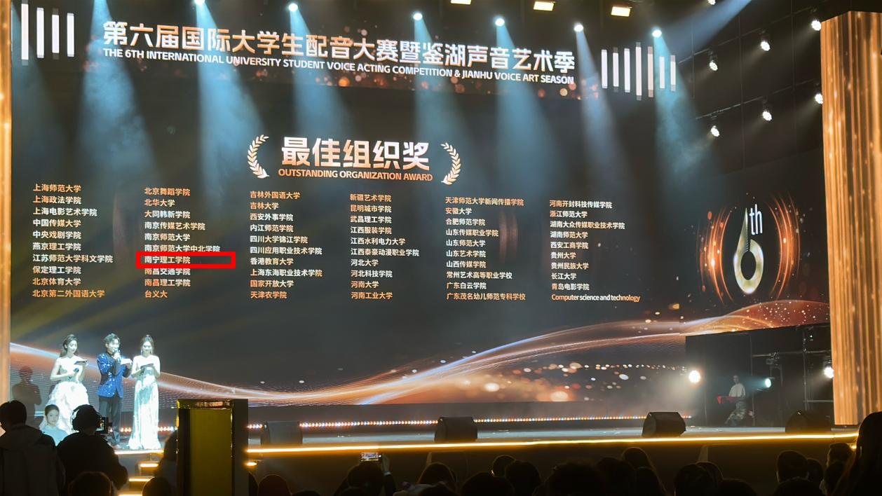 经过激烈的角逐,艺术与传媒学院播音与主持艺术专业学生张恒与、李思靓荣获影视剧组配音二等奖;黄欣怡、王硕然、刘润佳获游戏动漫组三等奖;方依志荣获广告组三等奖;郑钰霖荣获纪录片组三等奖和配音人气之星;黄欣怡、王硕然、刘润佳获配音人气之星;南宁理工学院荣获最佳组织奖。