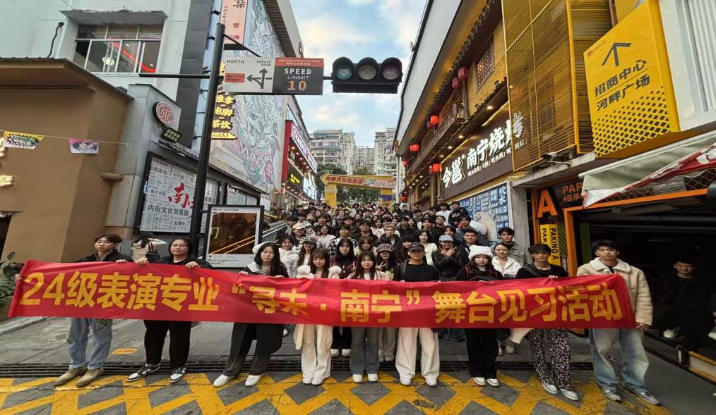 12月6日,艺术与传媒学院表演专业100余名师生赴南宁开展“寻未·南宁”舞台见习活动。师生以内街、平西夜市等地为取景地,挖掘人文故事,将表演专业素养融入创作,此次活动由微影星火数字传媒产业学院组织。