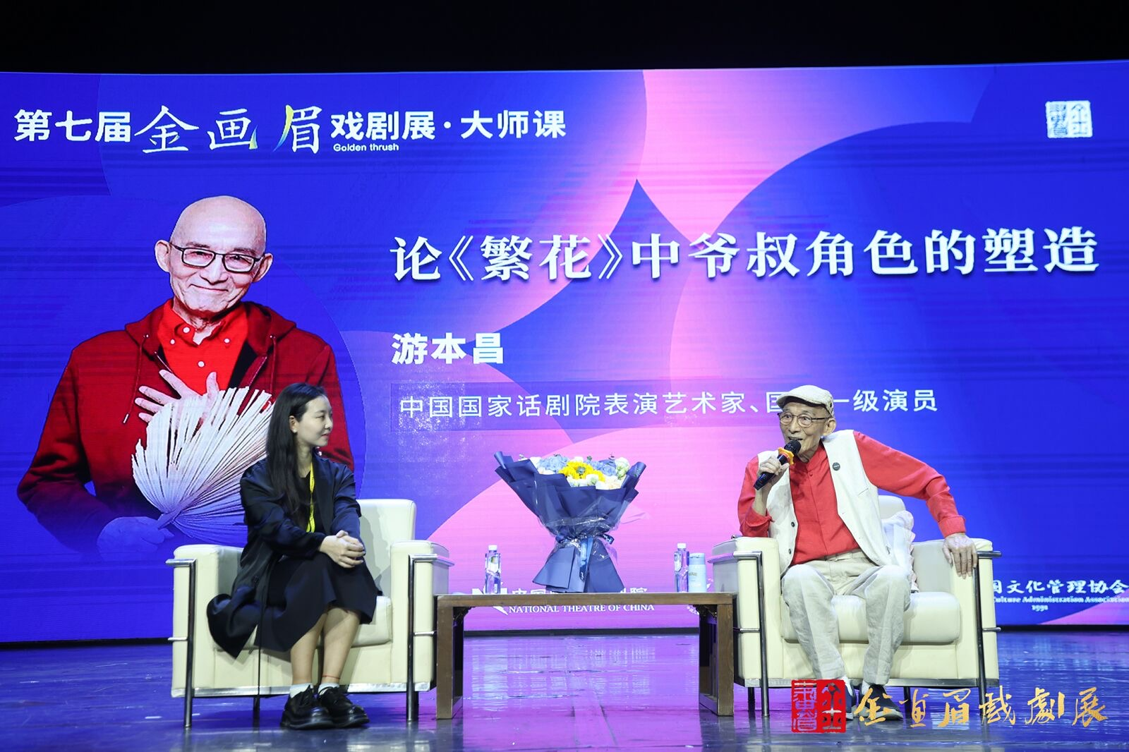 8月5与6日,本次戏剧展演邀请了中国国家话剧院表演艺术家、一级演员游本昌老师与张秋歌老师,为同学们带来了一场别开生面的大师课,在课上同学们感受到了表演的艺术魅力,学习到了更多关于角色塑造、人物的语言表达等专业知识,与戏剧大师面对面交流、汲取艺术精髓、精进个人技艺。