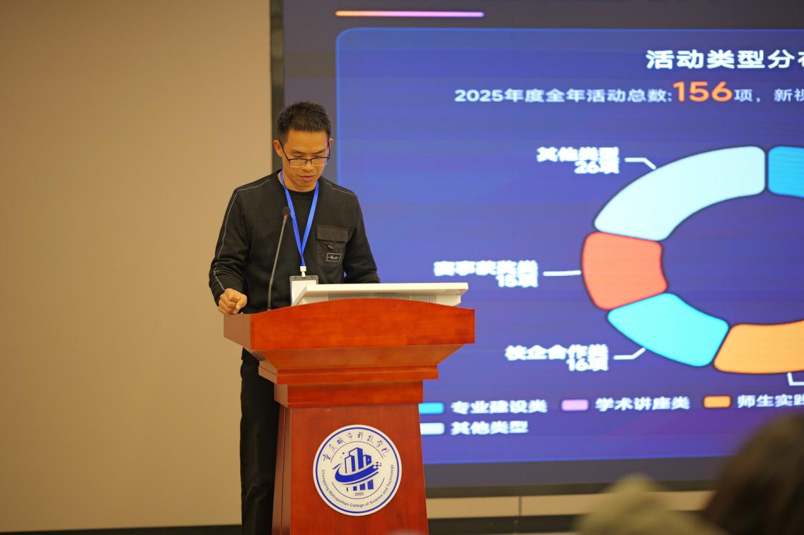 25日,陈广明代表学院进行专题汇报,着重介绍了学院2025年产业学院建设工作的推进情况以及在产教融合领域所取得的成果,涵盖校企合作实训基地建设、师生技能竞赛成果、产教融合典型案例等方面的情况。同时,详细阐释了产业学院在衔接教学与产业需求、提升学生实践能力等维度的实践路径。此外,还分享了学院2026年产业学院建设的工作计划和发展展望。汇报内容紧密围绕峰会主题,契合行业发展需求,获得了与会嘉宾的广泛关注与认可。