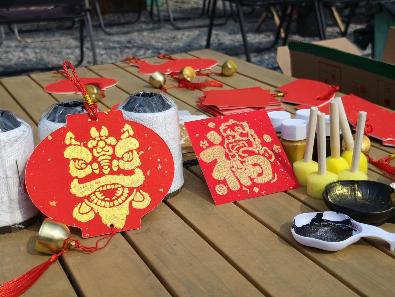 本次活动紧扣学院艺术特色与文化传播使命,设置新春福字拓印与瑞兽纹样挂饰DIY两大体验环节。活动现场,红卡纸、金墨、拓印拍、流苏铜铃等材料整齐陈列,传统年味与艺术氛围相得益彰。指导老师现场讲解拓印非遗技艺的历史渊源与文化内涵,演示蘸墨、轻拍、定版、脱模等关键步骤,带领大家感受传统工艺的匠心之美。