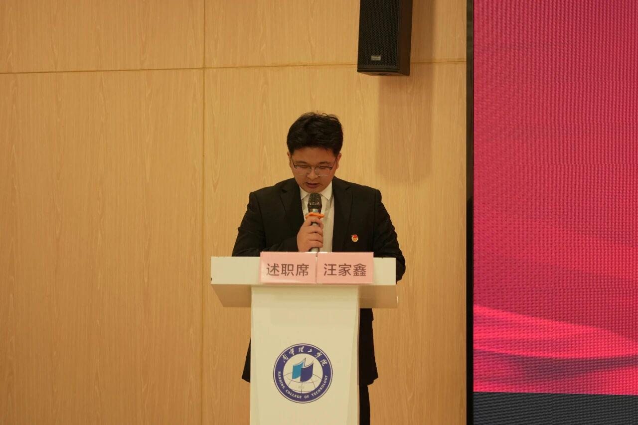 大会在庄严的氛围中拉开序幕。各学生组织负责人依次登台,作年度工作述职,首先述职的是学院团委、学生会代表——团委学生副书记、执行主席吴雨声。他以“引领、服务、成长”为核心,系统汇报了过去一年团学组织在思想引领、服务育人等方面的工作。体现了团学工作与专业特色的深度融合。
