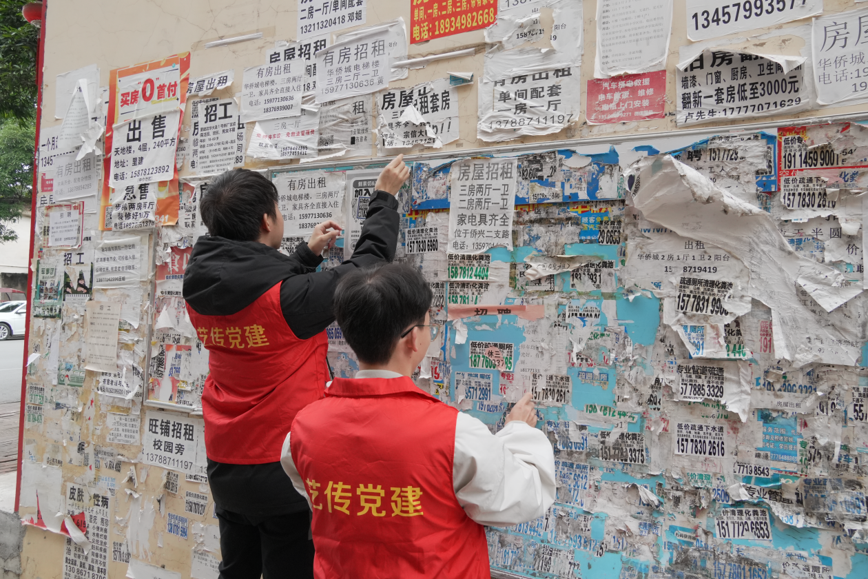 活动伊始,志愿者们迅速领取了扫帚、抹布、垃圾袋等清洁工具,并明确了各自的分工。随后,大家分头行动、协作默契,对社区内的墙面“牛皮癣”、楼道拐角堆积物等环境顽疾展开了“地毯式”清理。从铲除顽固的小广告到清运散落的杂物,志愿者们相互搭手、合力攻坚,使得社区整体环境变得整洁有序、焕然一新。