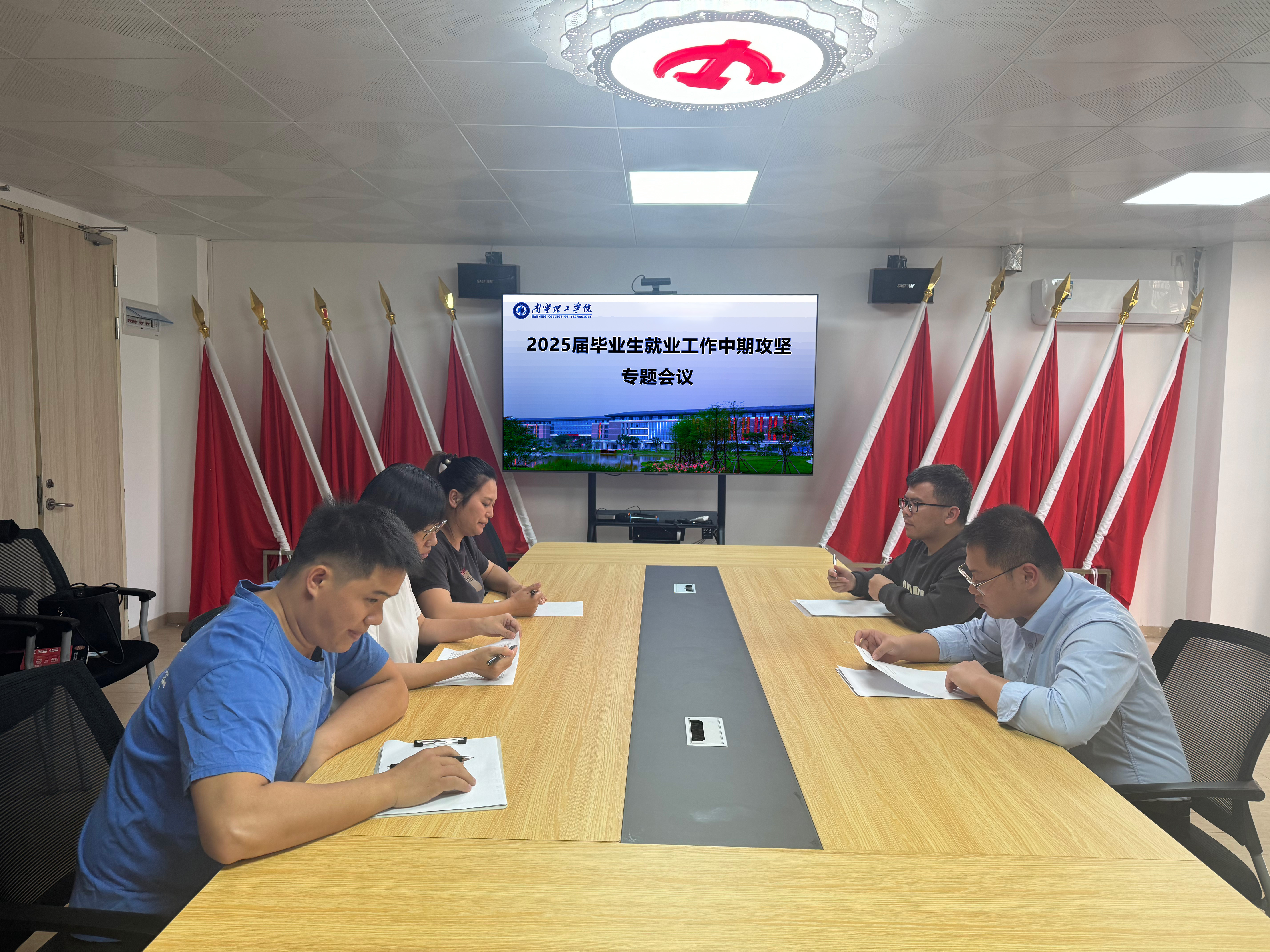 2025 年 6 月,为精准破解就业工作中的难点堵点,全力冲刺 2025 届毕业生就业目标,南宁理工学院艺术与传媒学院在学院会议室召开2025届就业工作中期攻坚专题会议。学院领导班子成员及全体毕业班辅导员参加会议。