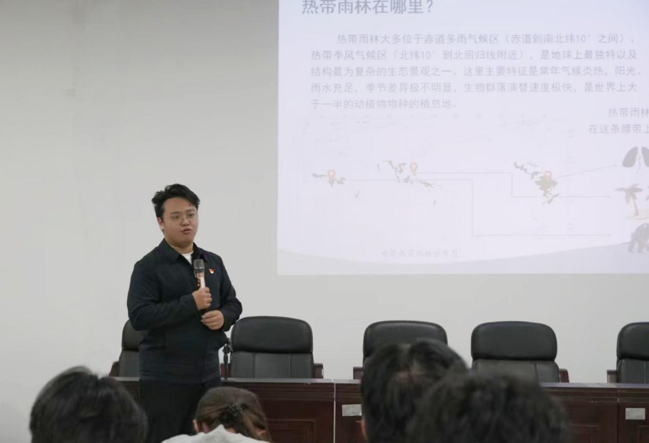 围绕“走进热带雨林国家公园”这一主题,孙大正团长首先介绍了热带雨林的全球与中国分布情况,重点讲解了海南热带雨林国家公园的“四库之宝”生态价值,包括水源涵养、空气净化、生物多样性保护等关键方面,还详细科普了园内珍稀动植物、国家公园的定义及中外发展历程。宣讲过程中,他通过互动提问如“热带雨林分布在哪”等方式引发听众思考,并搭配图片和视频直观展示内容。同时,结合生态产品价值、碳汇交易案例等生动实例,深入解读了保护意义,用通俗易懂的语言转化了专业知识,并通过问答环节充分调动了听众的参与感,让听众深刻理解了国家公园的重要性。