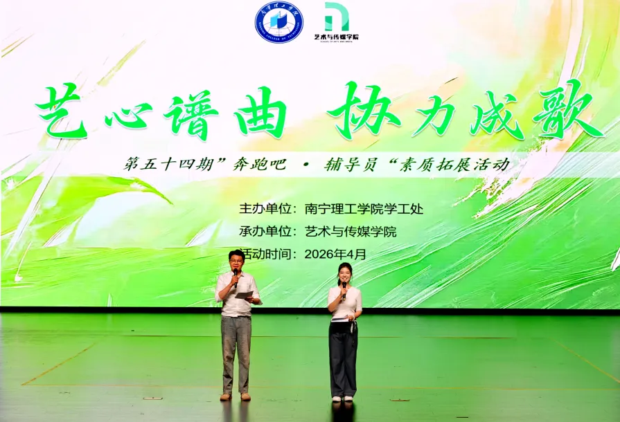 本次活动由南宁理工学院学工处(党委学生工作部)主办,艺术与传媒学院承办,活动严格按照活动方案精心筹备,依托艺传学院艺术专业特色,将艺术元素与素质拓展深度融合,打造了一场集趣味性、协作性、艺术性于一体的特色活动。本次活动由艺术与传媒学院大学生艺术团话剧队队长、播音2401班关一鸣,与艺术与传媒学院大学生艺术团主持队干事、播音2406班佘雨欢共同主持。