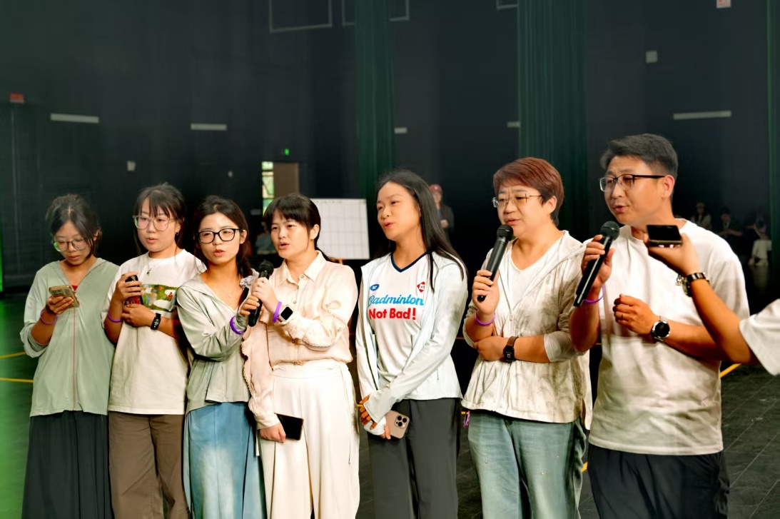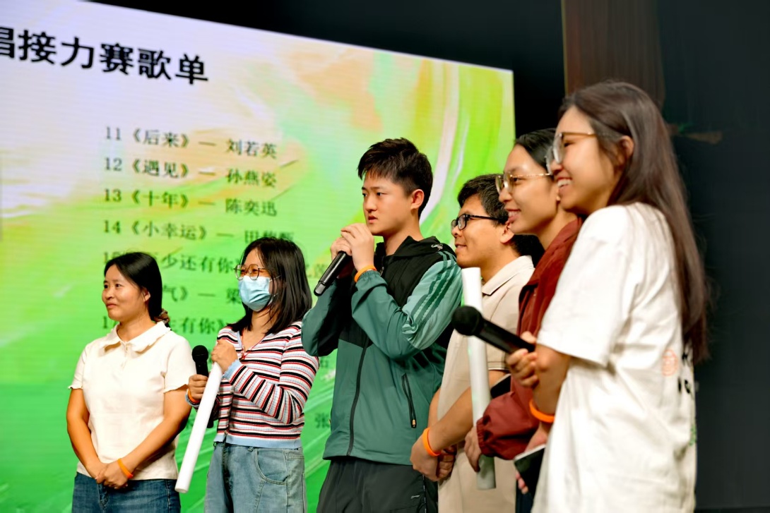 热身过后,活动进入激烈的团队游戏环节。作为首个登场的团队游戏,“演唱接力赛”充分结合艺传学院艺术特色,要求各组明确分工后,按顺序接力演唱完整歌曲,确保衔接流畅、歌词准确、节奏合拍。