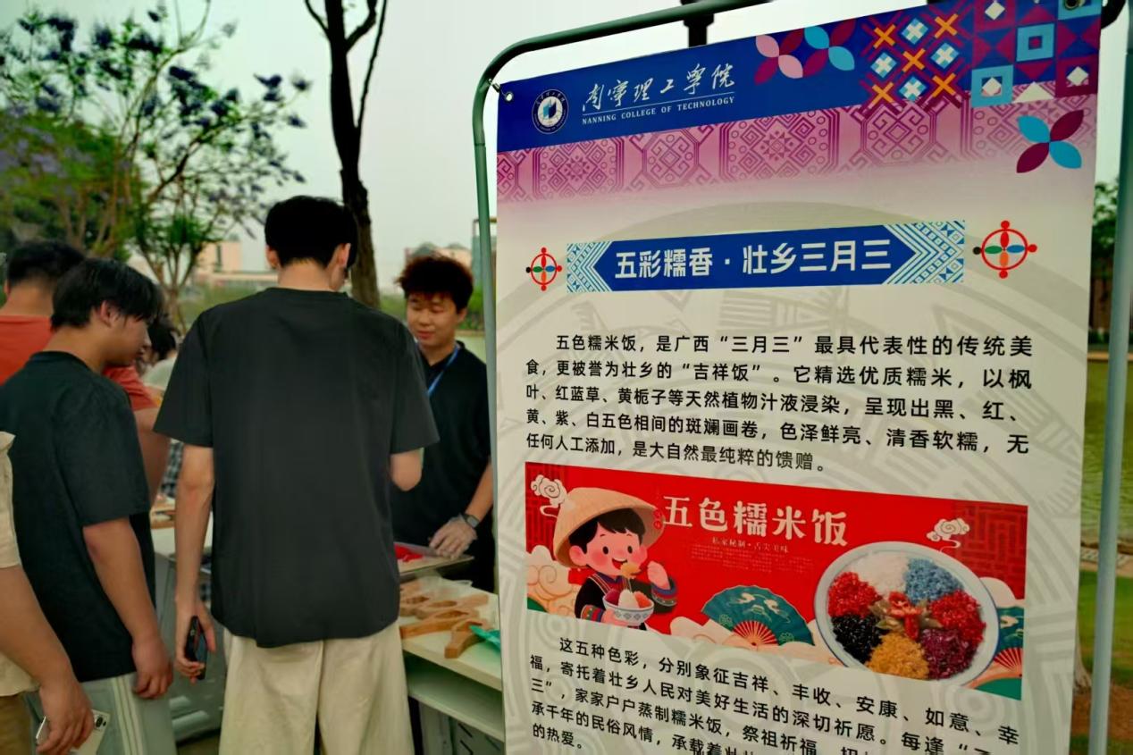为深入贯彻落实习近平总书记关于民族团结进步的重要论述精神,传承弘扬中华优秀传统文化,扎实推进铸牢中华民族共同体意识教育,今年 "广西三月三" 期间,南宁理工学院艺术与传媒学院充分发挥专业特色与育人优势,组织师生立足校园、走进社区、走进小学,开展一系列丰富多彩的民族节庆文化实践活动,以青春之行担文化传承之责,以实干之举传民族团结之情,让青年力量在实践中绽放光彩。