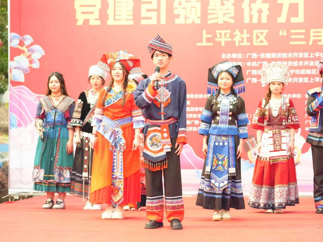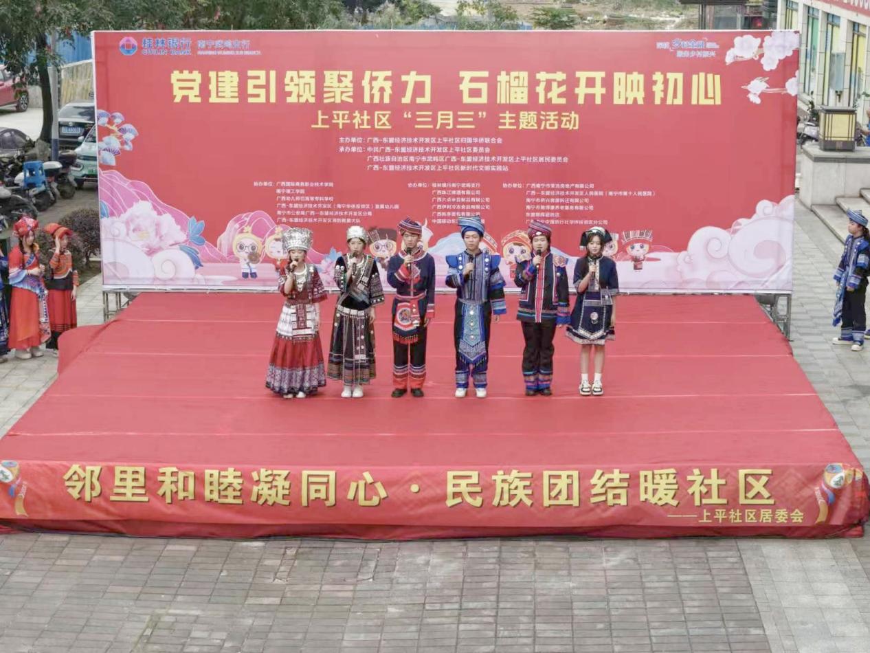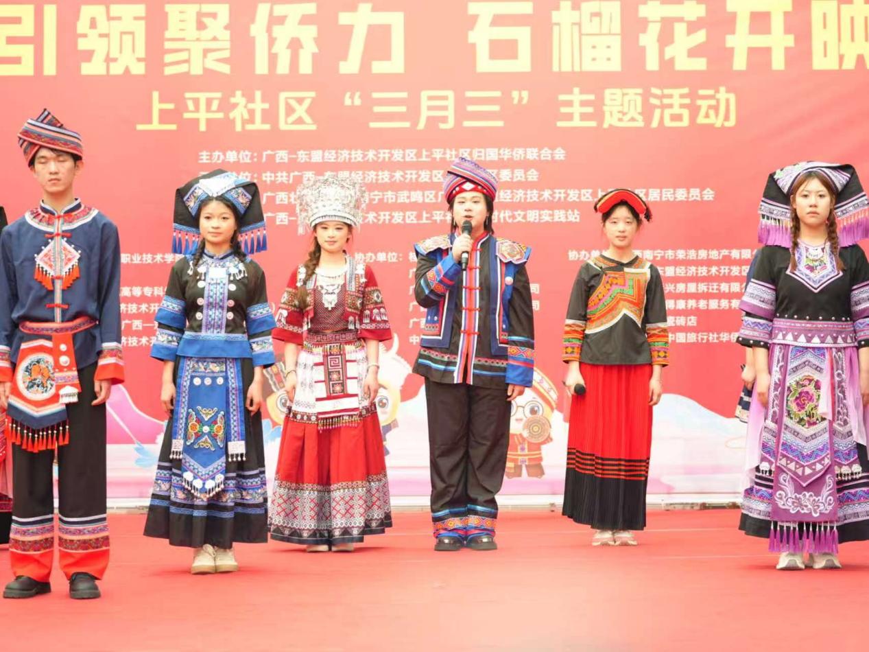 4 月 15 日,由武鸣区上平社区归国华侨联合会主办的 "党建引领聚侨力 石榴花开映初心" 三月三主题活动,在广西 - 东盟经济技术开发区观唐府小区温情启幕。